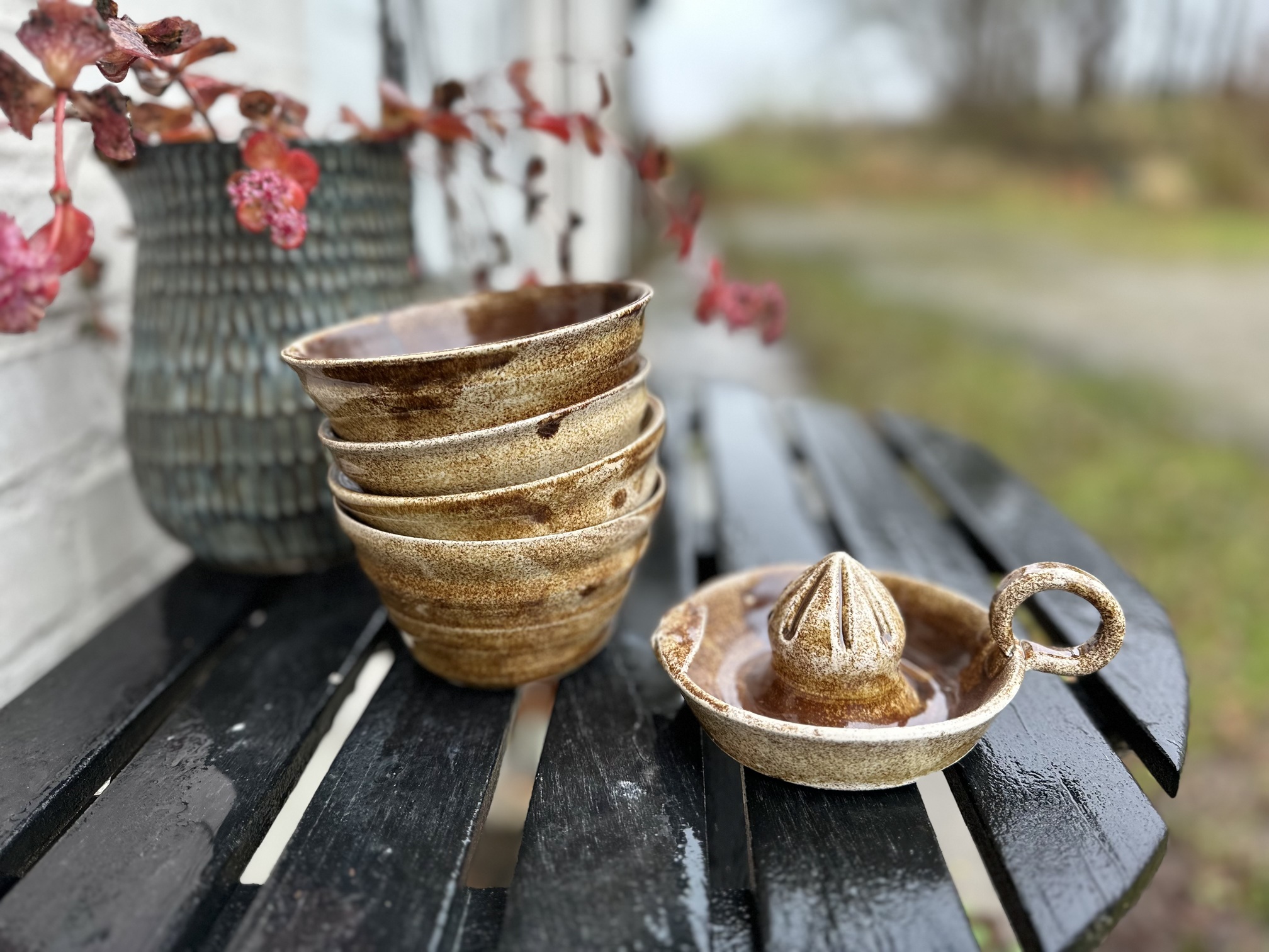 Skåle til morgenmad, snacks, slik osv. i den nye smukke bark brune farve. Virkelig en glasur med mange nuancer.