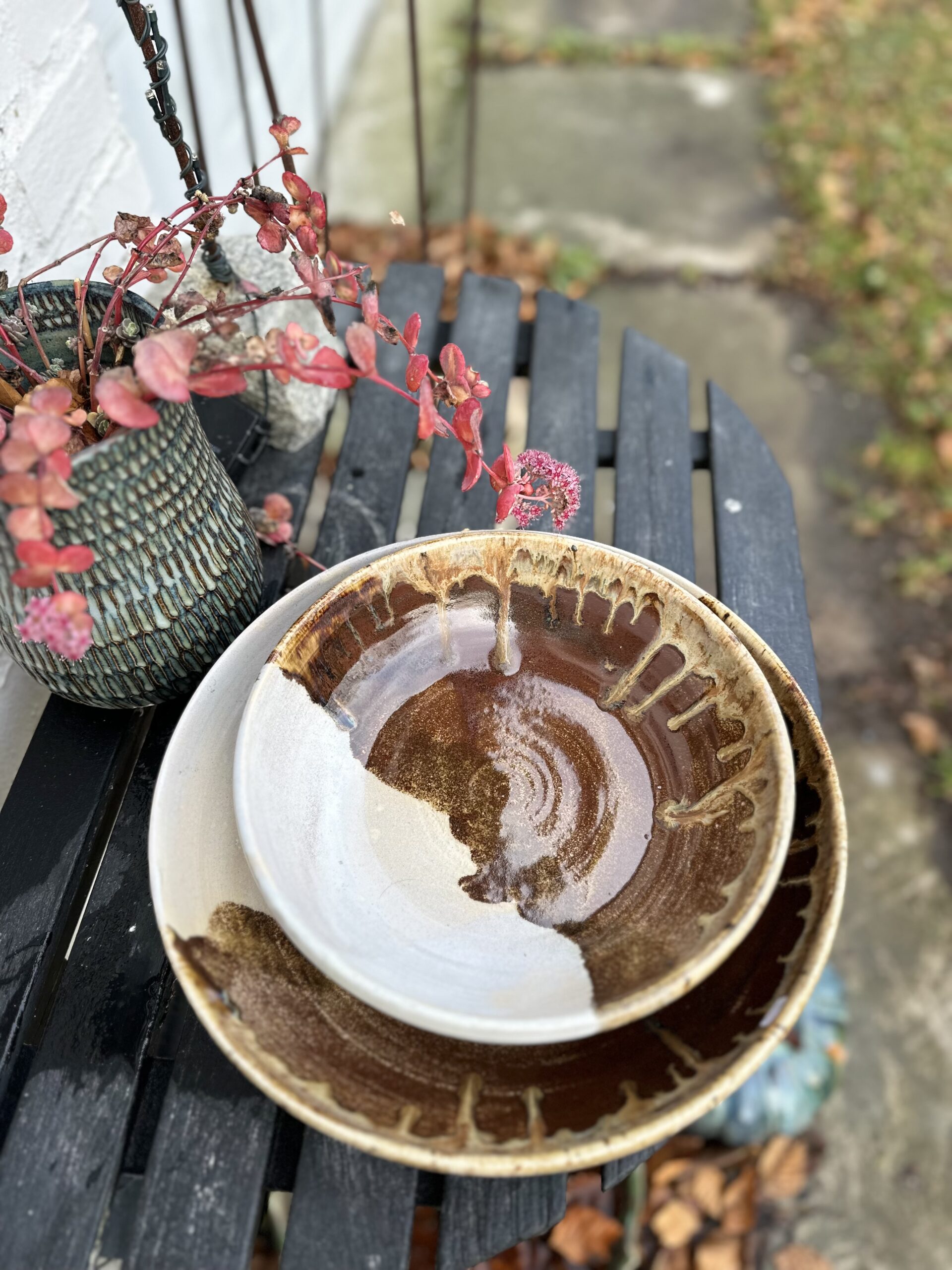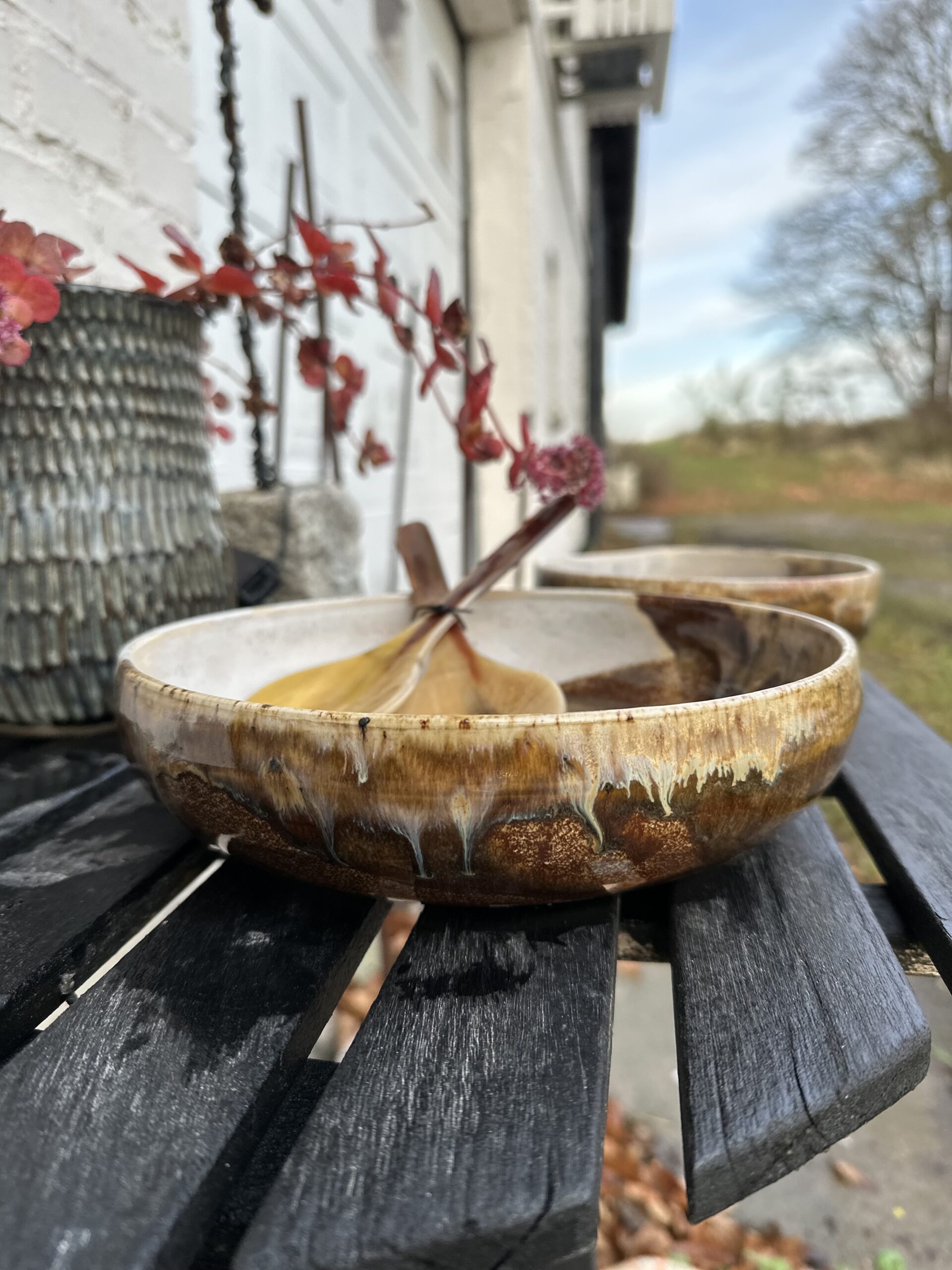 Stor smuk unika skål i grå og brune farver – jeg har døbt den Seabird Pond. Skålen er i stentøj og tåler opvaskemaskine. Flere forskellige glasurer giver et helt unikt udtryk som aldrig kan gentages så denne skål er virkelig unika.